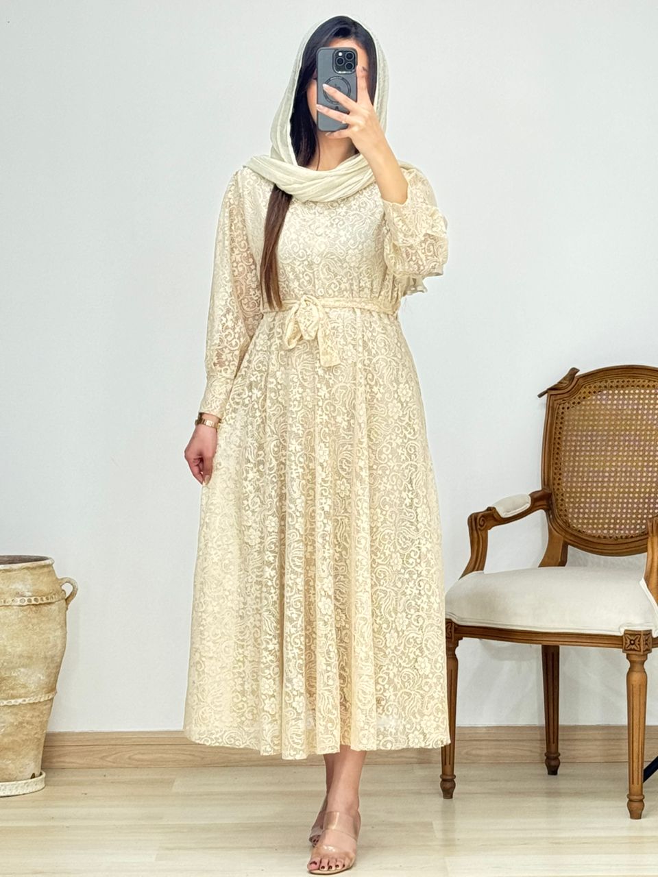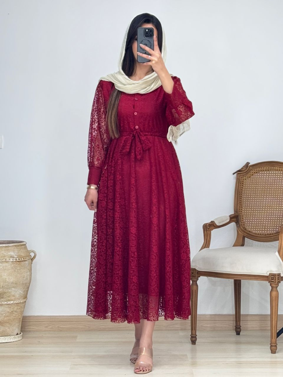 پیراهن دانتل قد: 136 دور سینه: 108 دور بازو: 50 قدآستین: 54